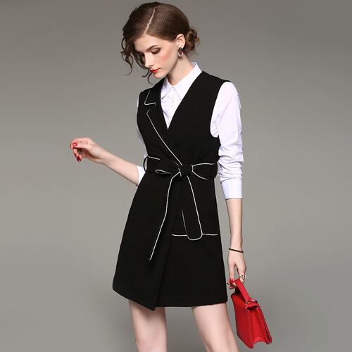 「大特価」 新作 エレガンス Vネック ノースリーブ リボン ワンピース