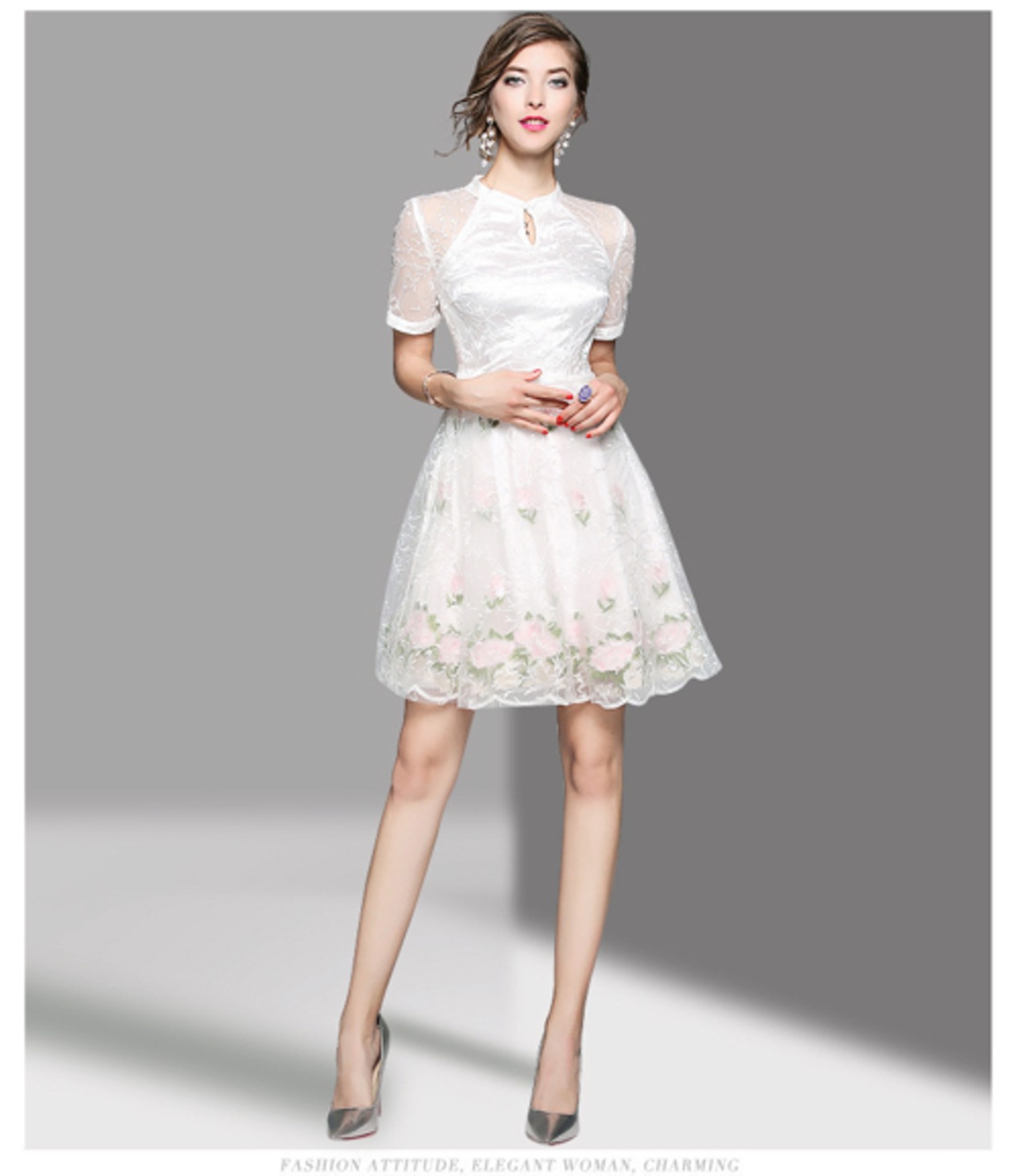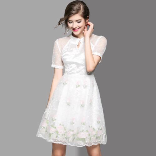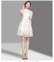 「大特価」 新作 キュート お花 刺繍 半袖 スリム ワンピース