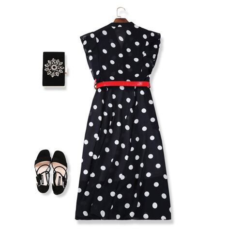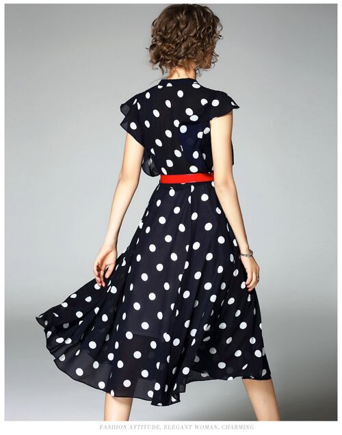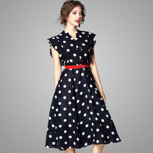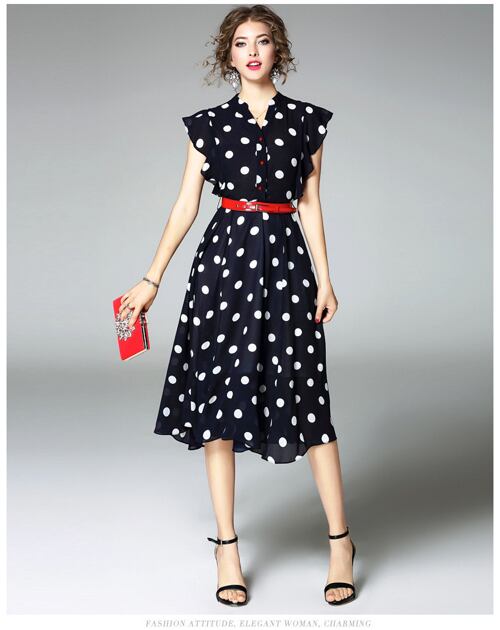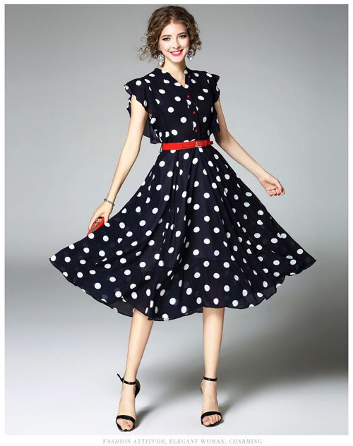 「大特価」 新作 キュート ドット柄 フリル スリム ワンピース