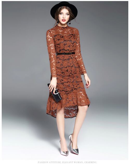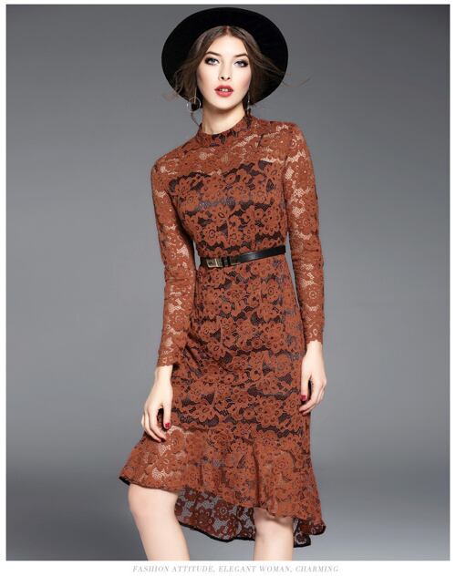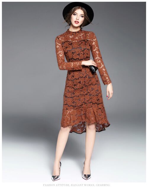 「大特価」 新作 総レース フレア 長袖 結婚式 ワンピース