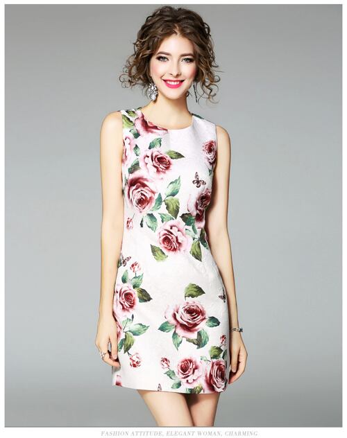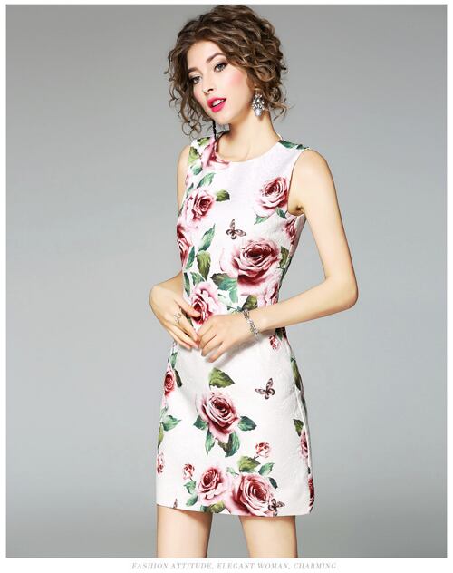 「大特価」 新作 キュート ノースリーブ プリント スリム ワンピース