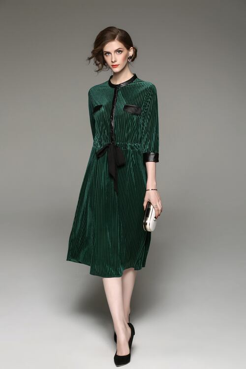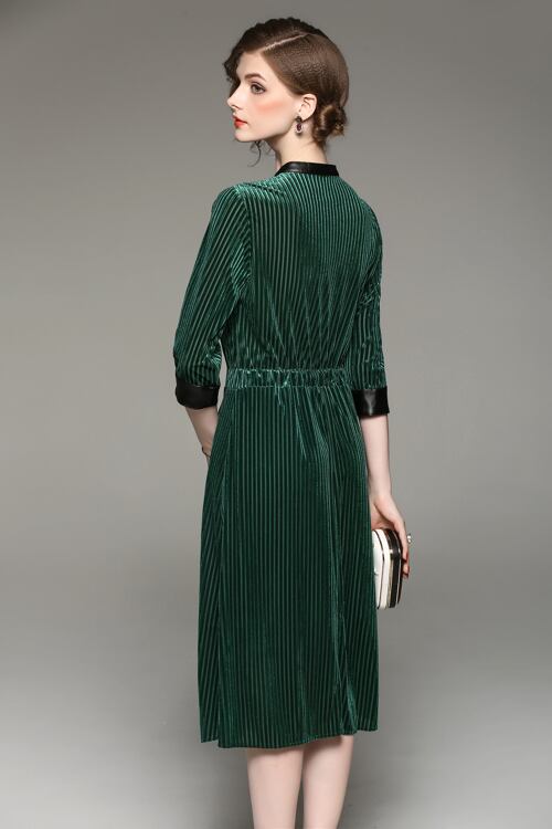「大特価」 新作 エレガンス ストライプ 7分袖 スリム 2色 ワンピース