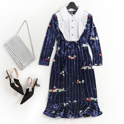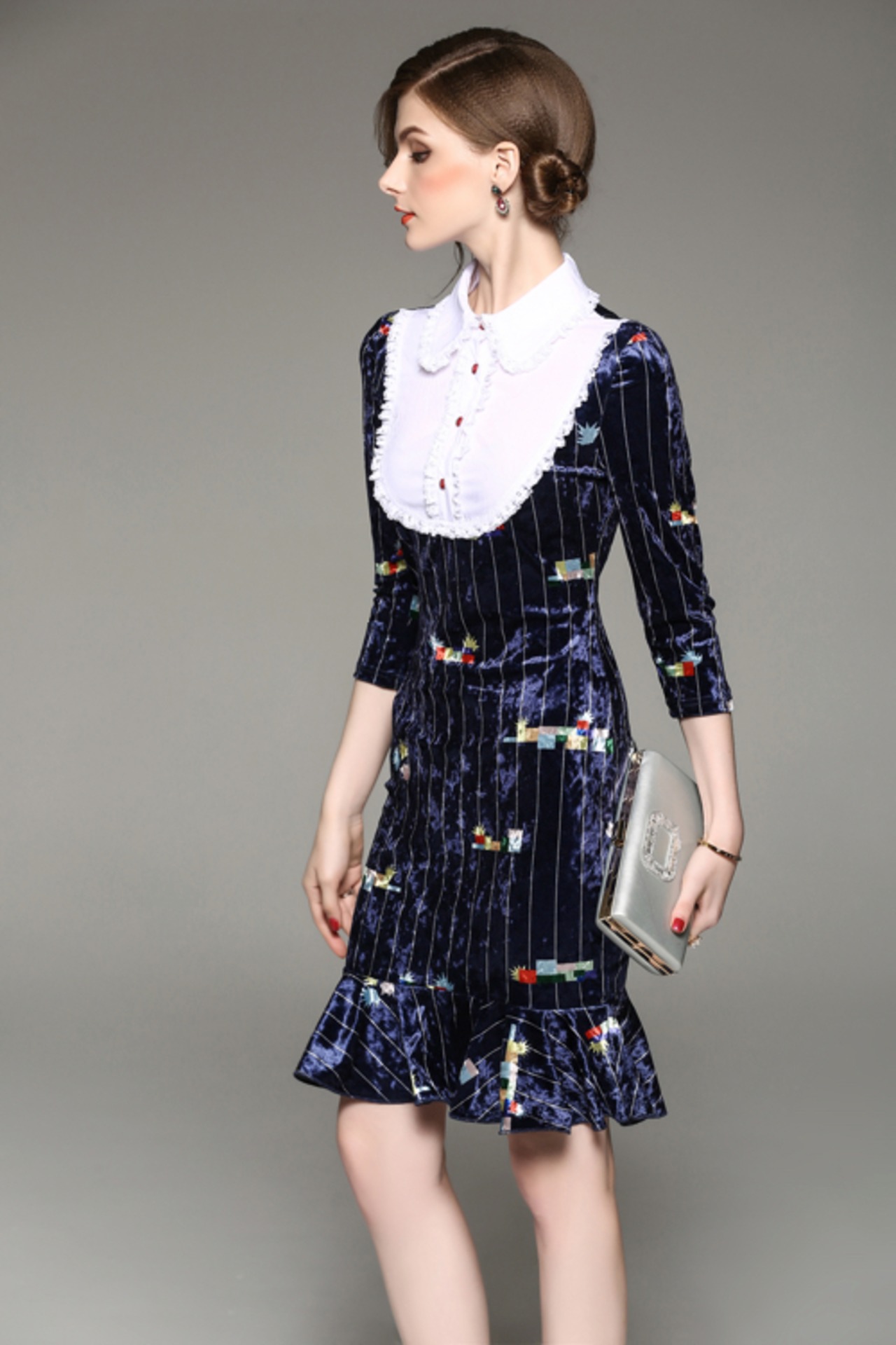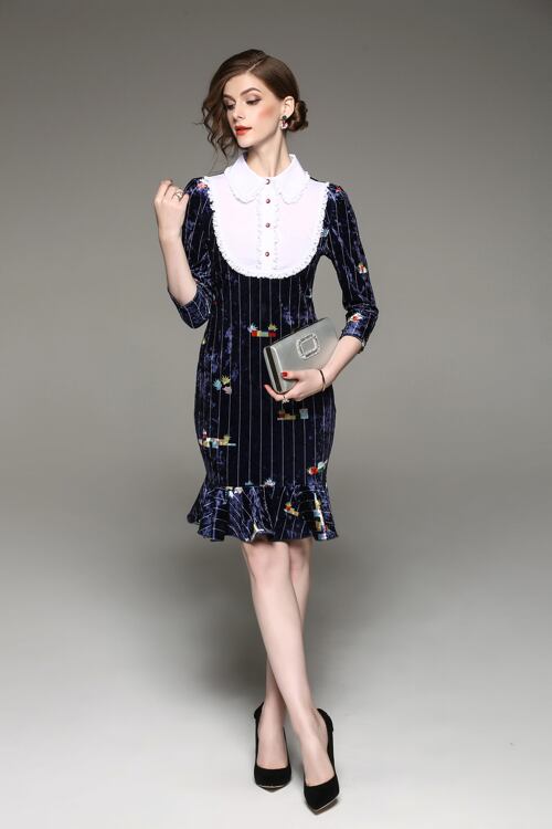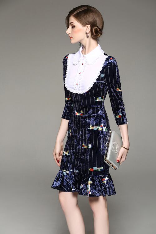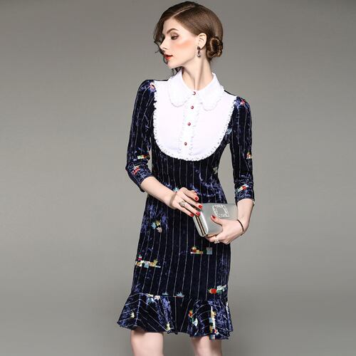 「大特価」 キュート 切替 フレア プリント 7分袖 スリム ワンピース