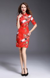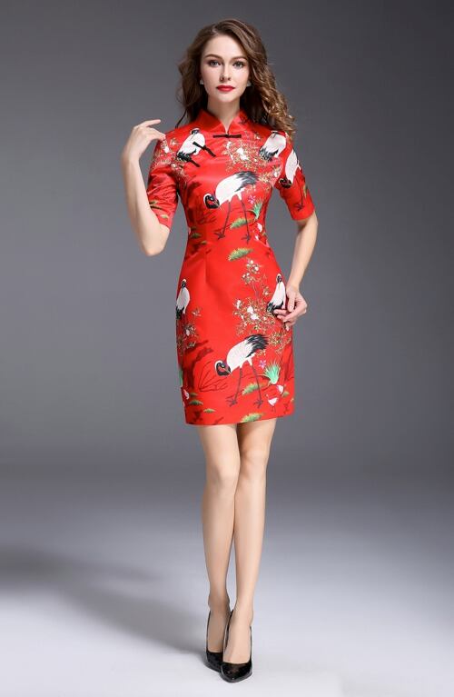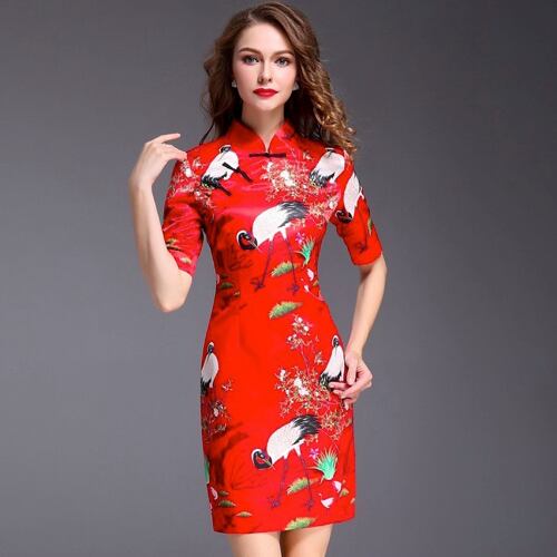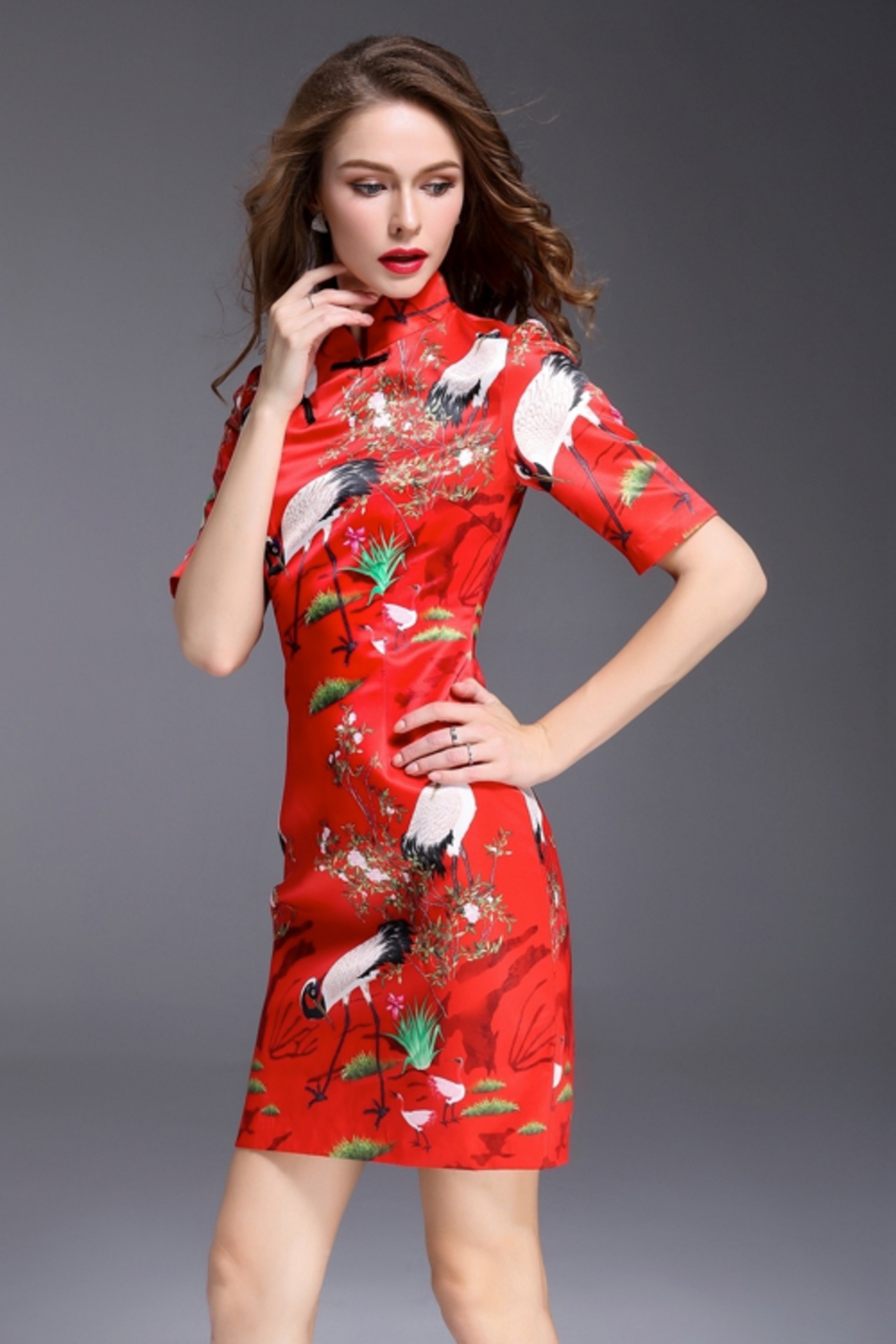 「大特価」 新作 半袖 チャイナドレス風 プリント スリム ワンピース