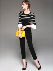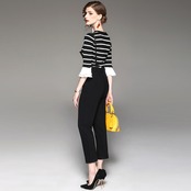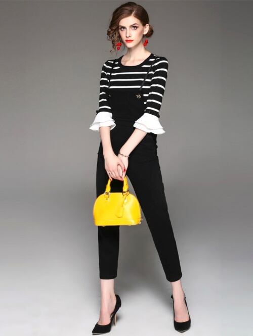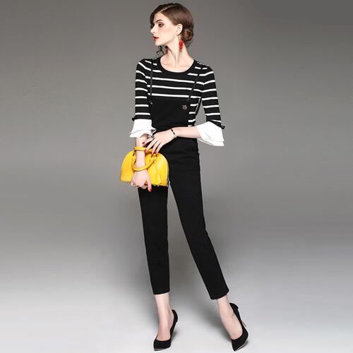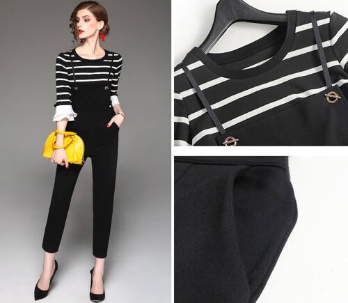 「大特価」 上品 ストライプ トップス オールインワン セットアップ