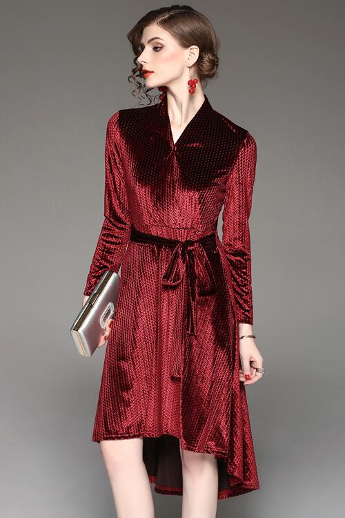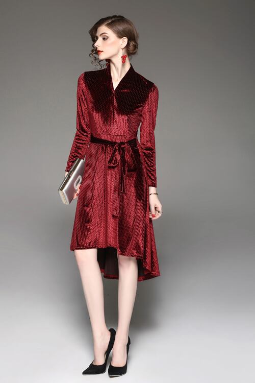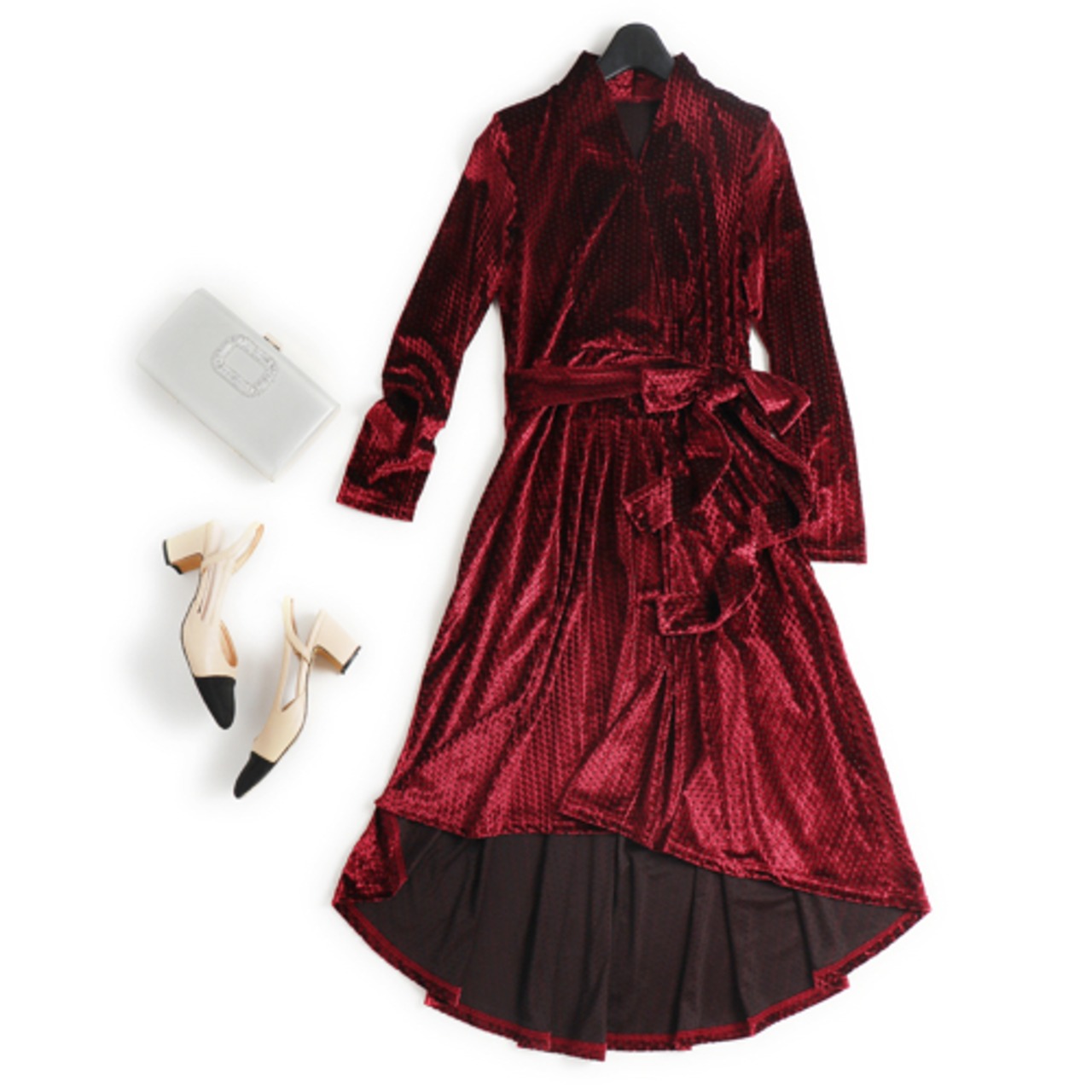 「大特価」 新作 エレガンス 7分袖 スリム ベルベット ワンピース