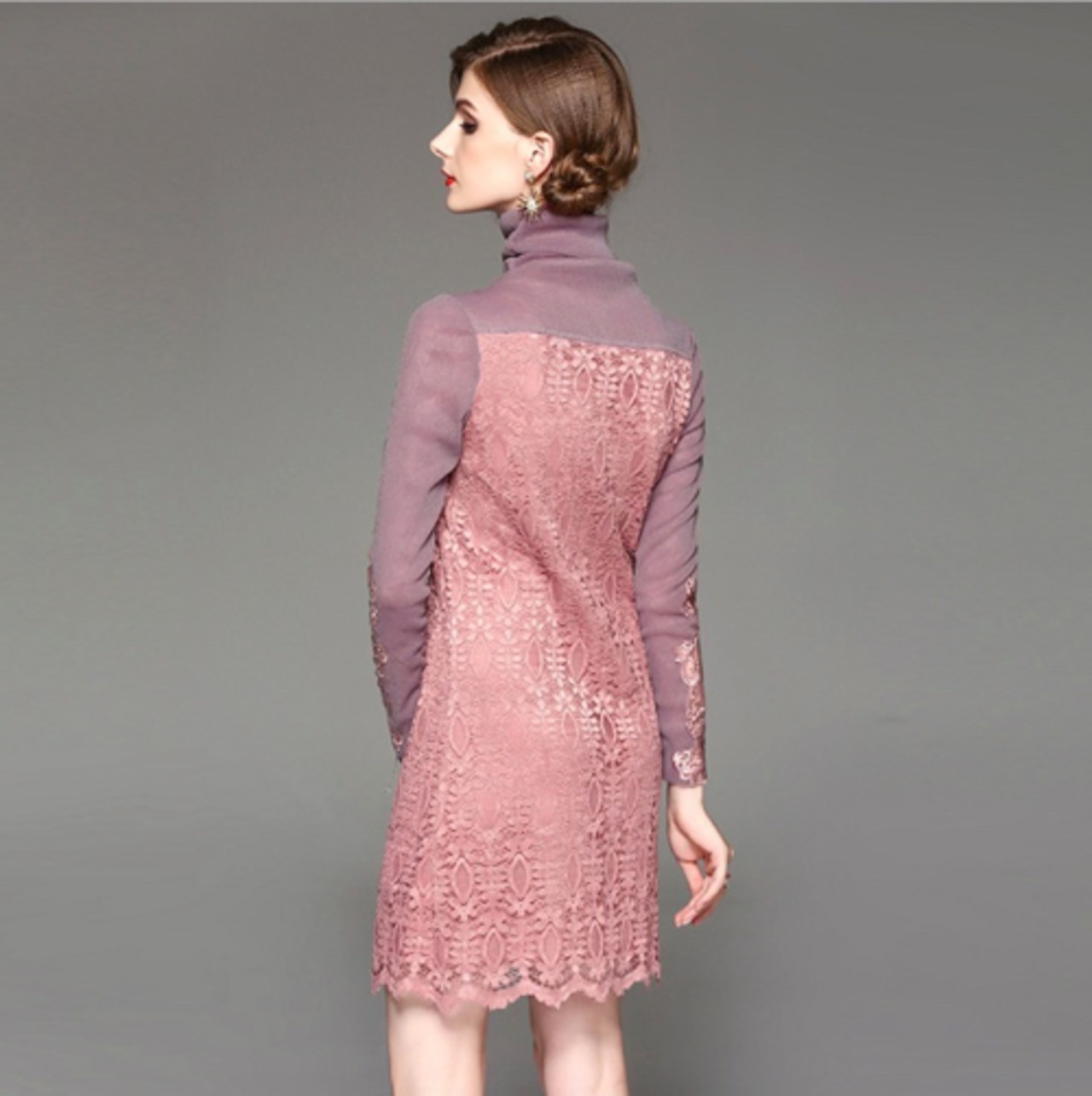 「大特価」 新作 上品 レース 切替 長袖 スリム ワンピース