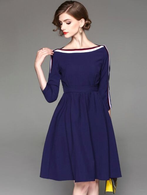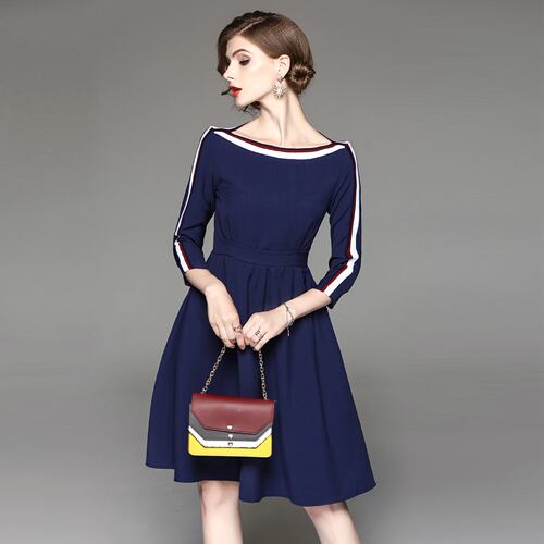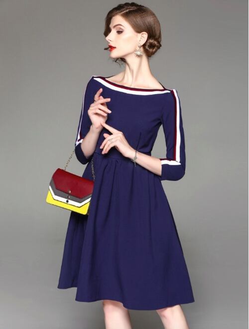 「大特価」 新作 上品 バイカラー 7分袖 スリム 結婚式 ワンピース