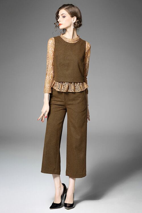 「大特価」 新作 レース トップス パンツ 上品 2色 セットアップ