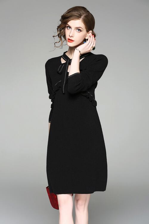 「大特価」 新作 上品 リボン ニット 長袖 2色 ワンピース