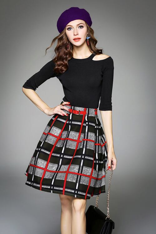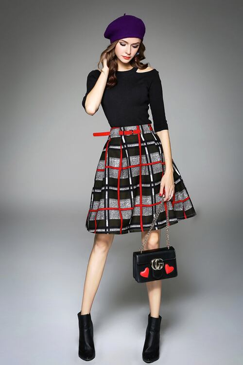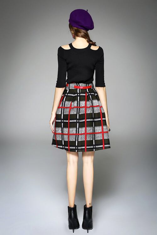 「大特価」 上品 ニット トップス チェック スカート セットアップ