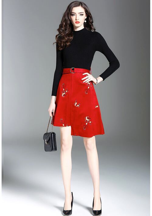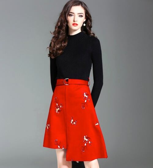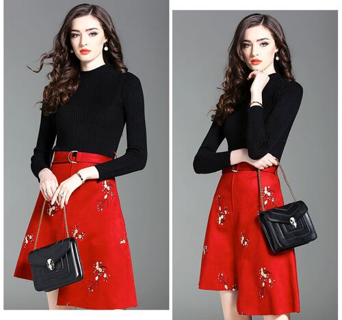 「大特価」 新作 上品 刺繍 ニット 切替 バイカラー ワンピース
