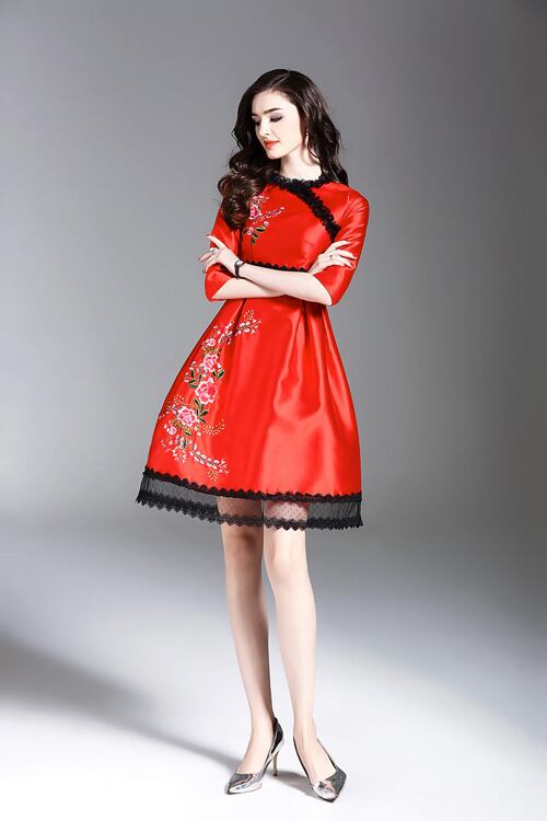 「大特価」 新作 上品 スリム 刺繍 2色 結婚式 お呼ばれ ワンピース