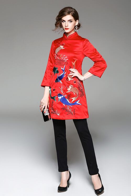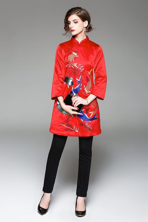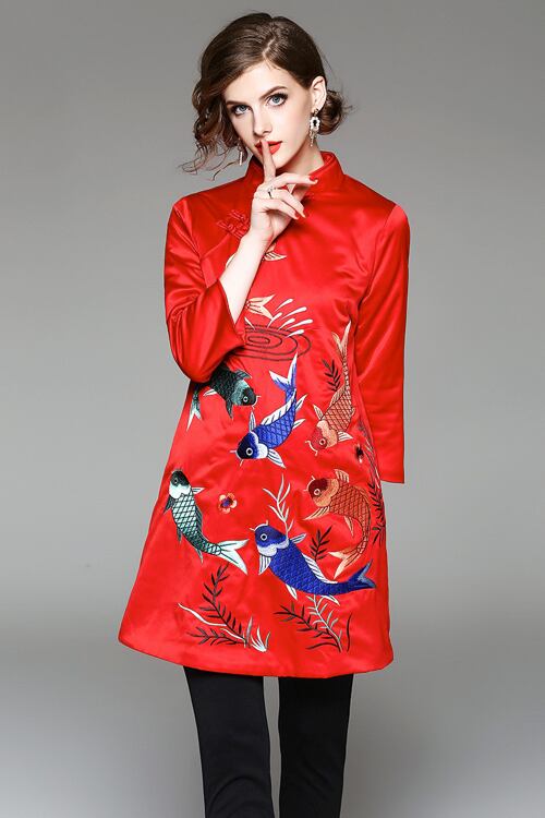 「大特価」 新作 上品 刺繍 2色 7分袖 中綿入り ワンピース