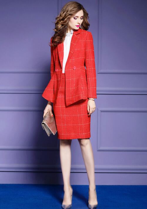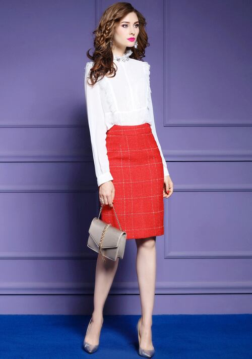 「大特価」 上品 チェック ペプラム トップス スカート セットアップ