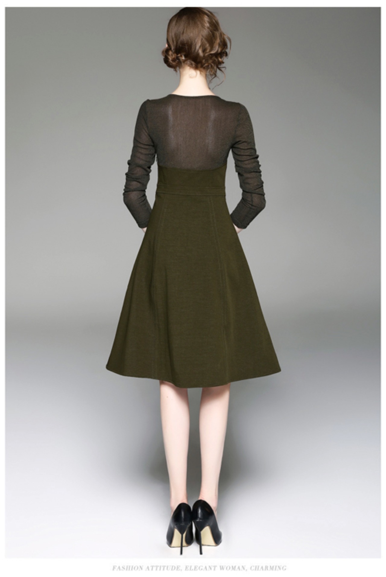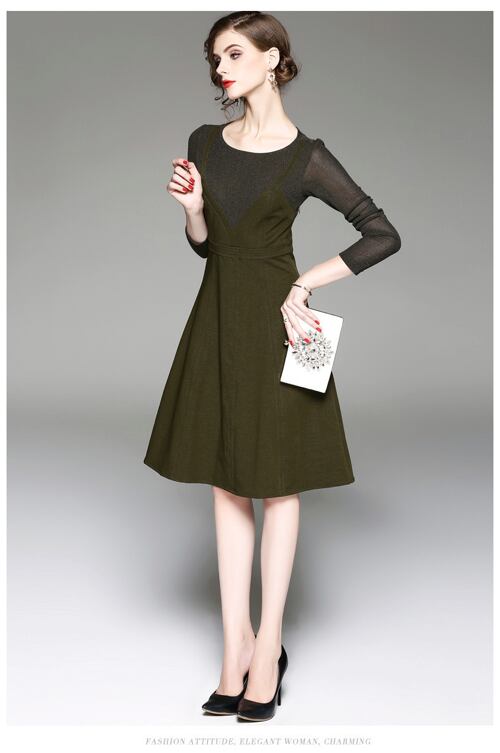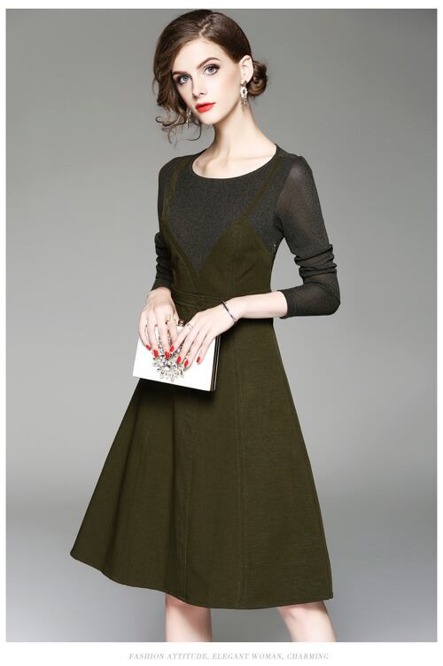「大特価」 新作 上品 切替 スリム 長袖 ワンピース