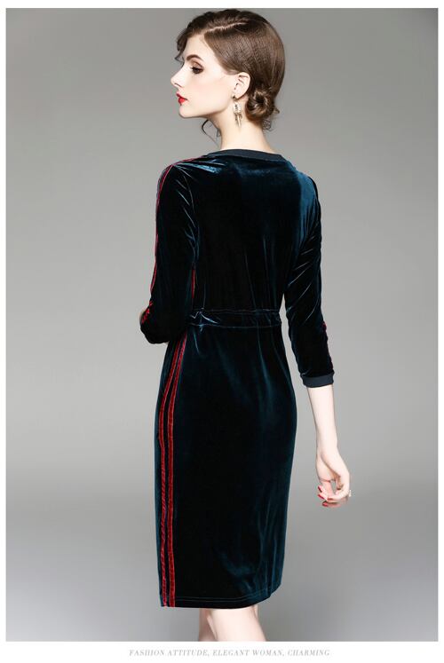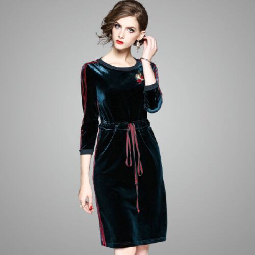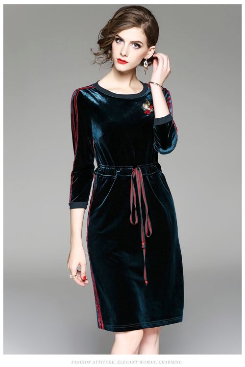 「大特価」 新作 シンプル ベルベット 7分袖 ワンピース