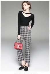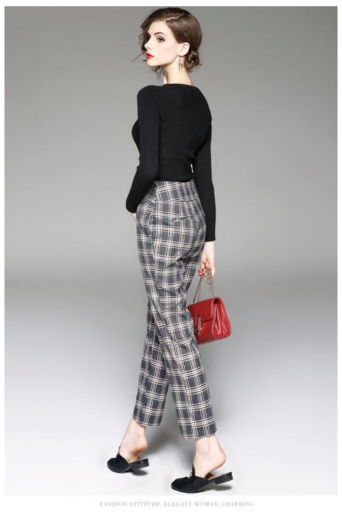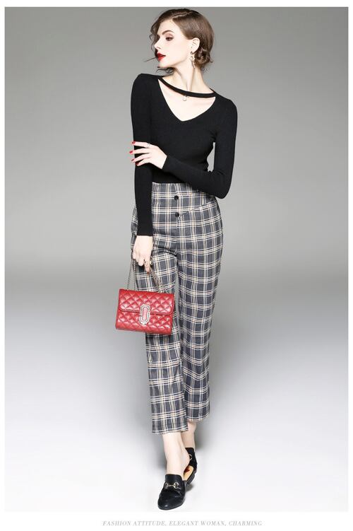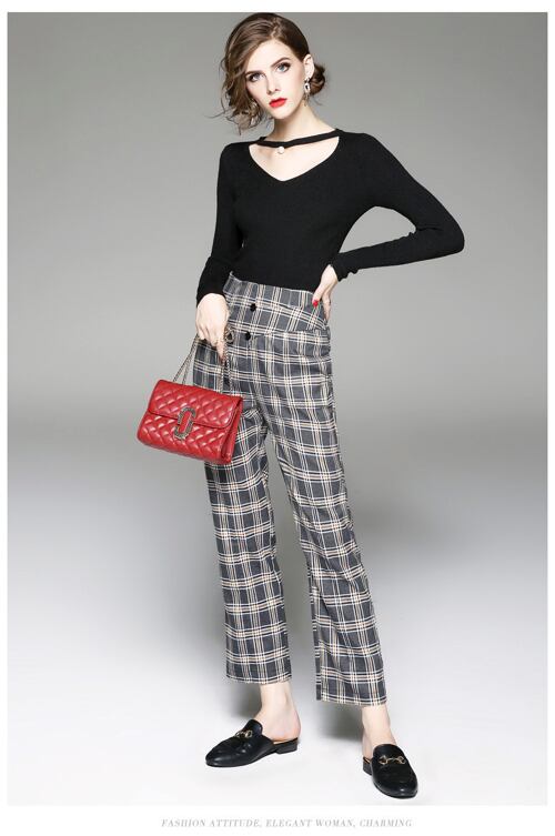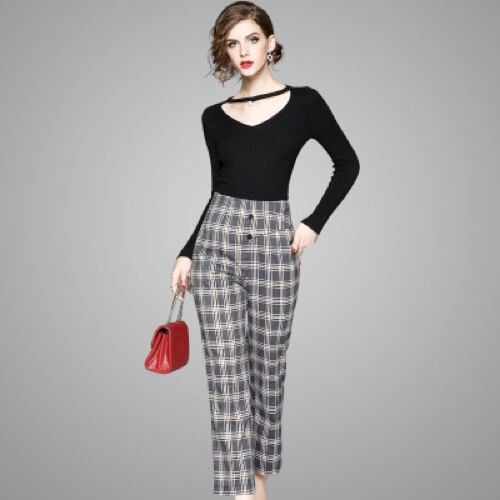 「大特価」 新作 ニット トップス チェック パンツ セットアップ