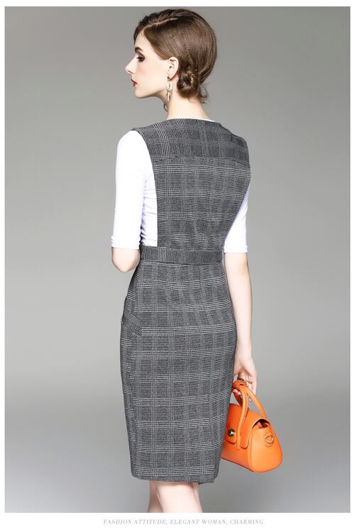 「大特価」 新作 上品 チェック Vネック ノースリーブ ワンピース