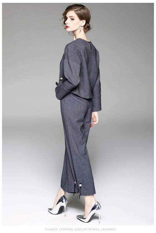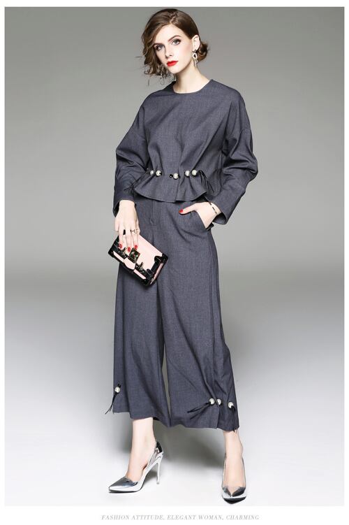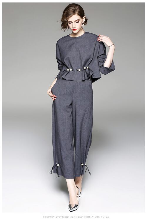 「大特価」 新作 パール風 トップス パンツ セットアップ ツーピース