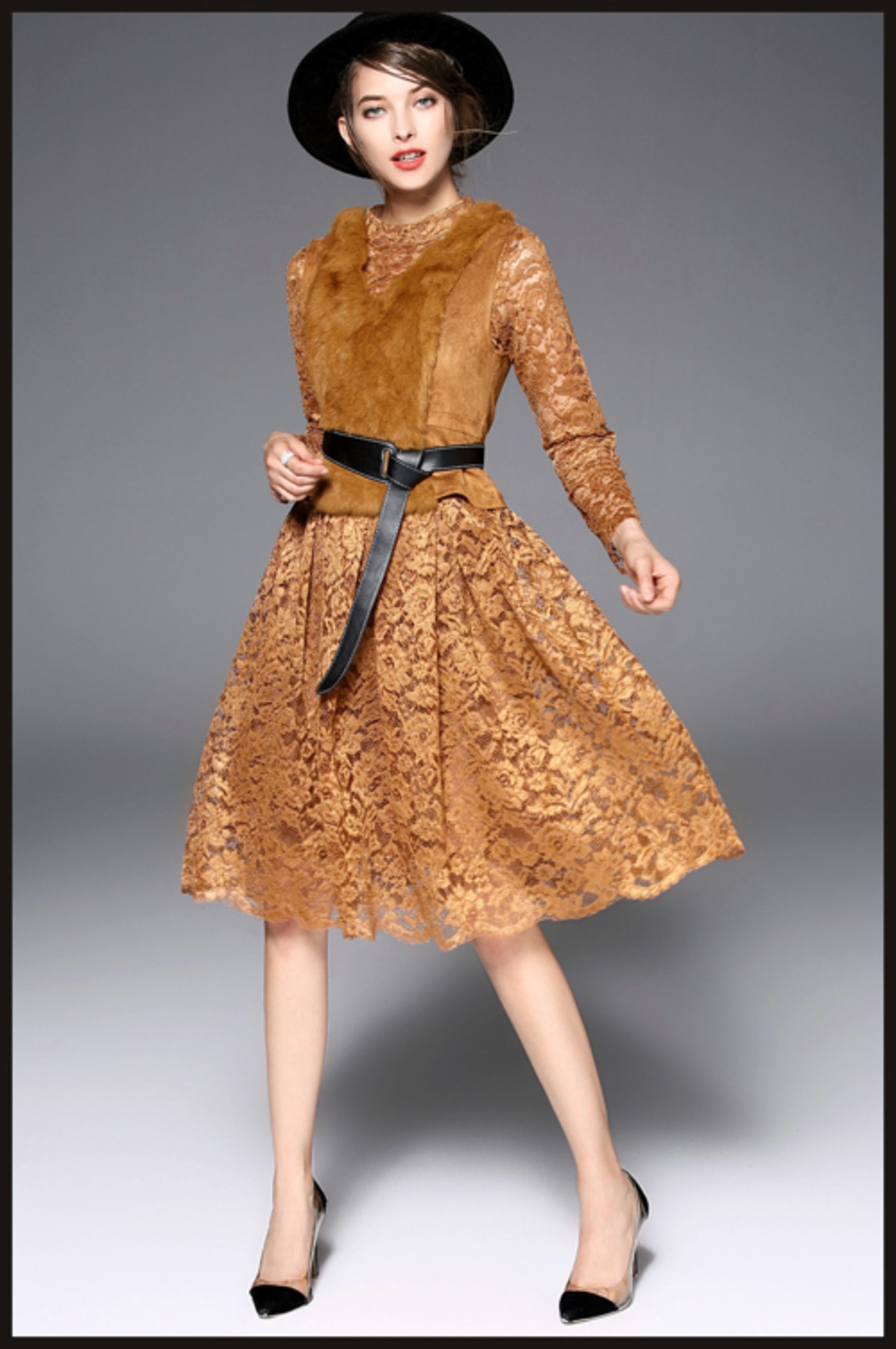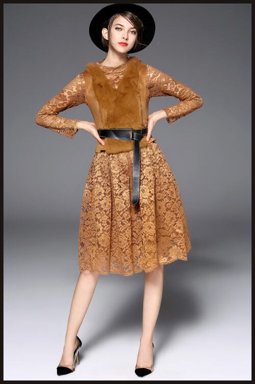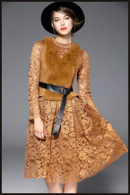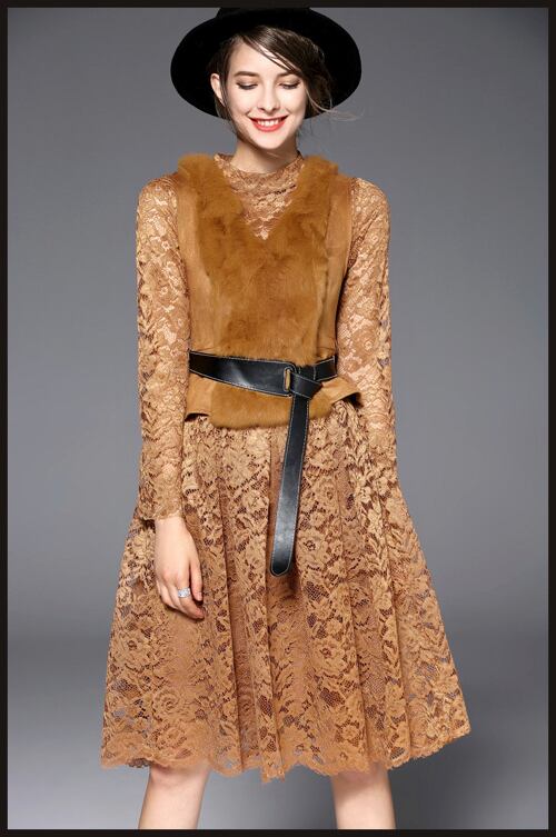「大特価」 ラビットファー ベスト レース ワンピース セットアップ