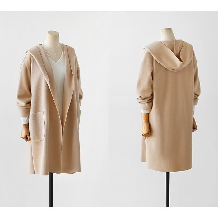 【4色】人気商品★ルーズフィットフードニットコートdjo80