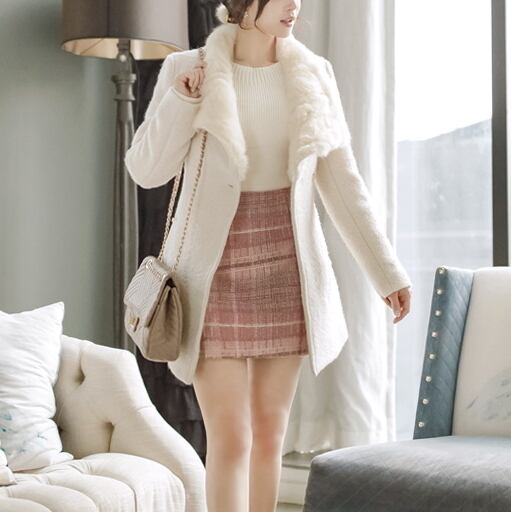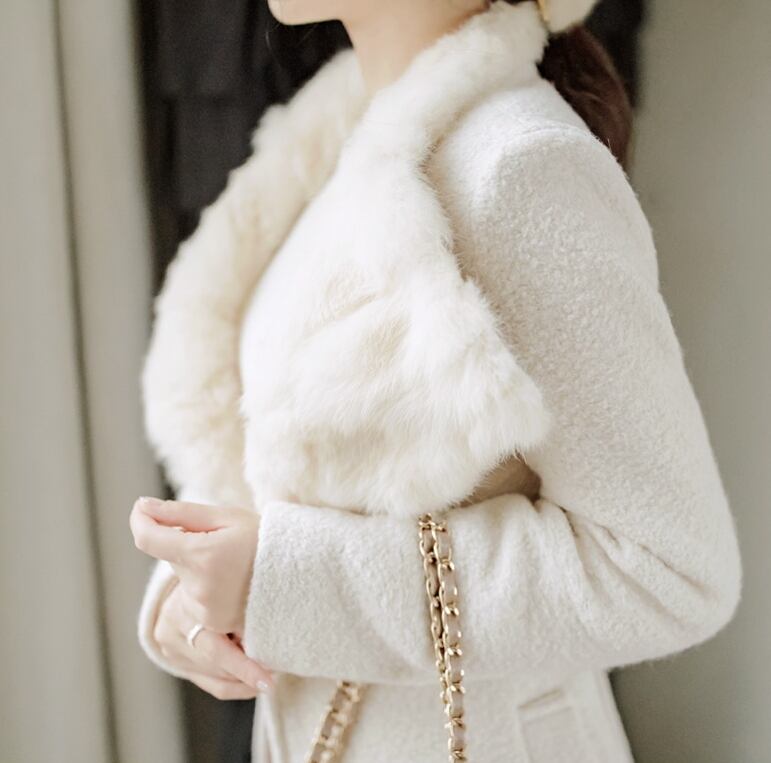 [人気]高級天然ラビットファーウールコート[5色]{S、M] a31