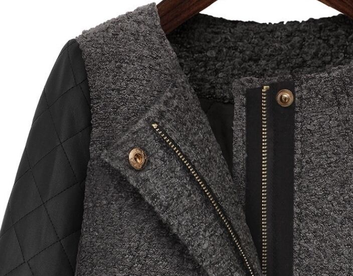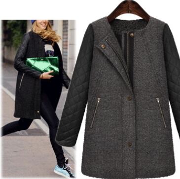 ヒット!人工皮革キルティング袖配色コートff40