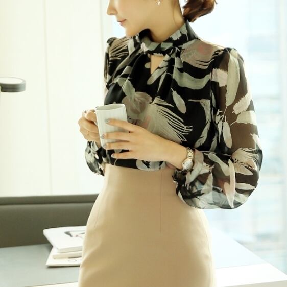 【2色】ロマンチック★フェザーパターンシフォンブラウスdlp32
