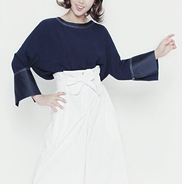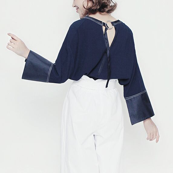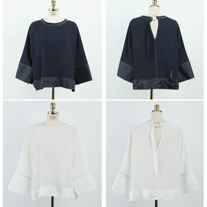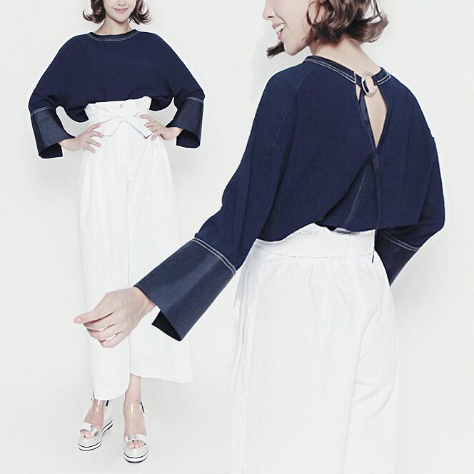 【2色】スタイリッシュ★ユニークカフス&バックブラウスdwc151