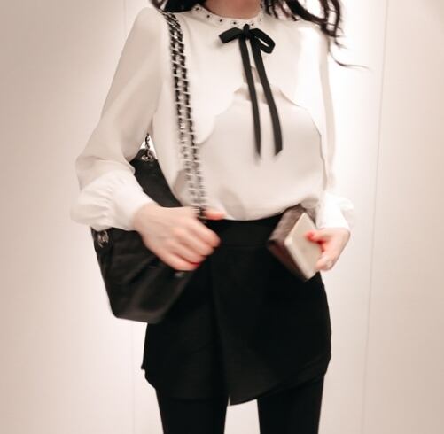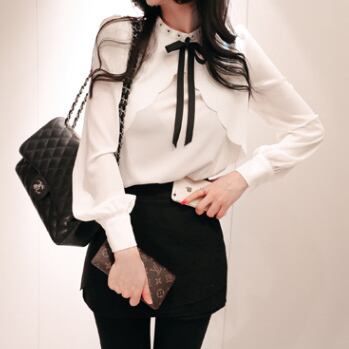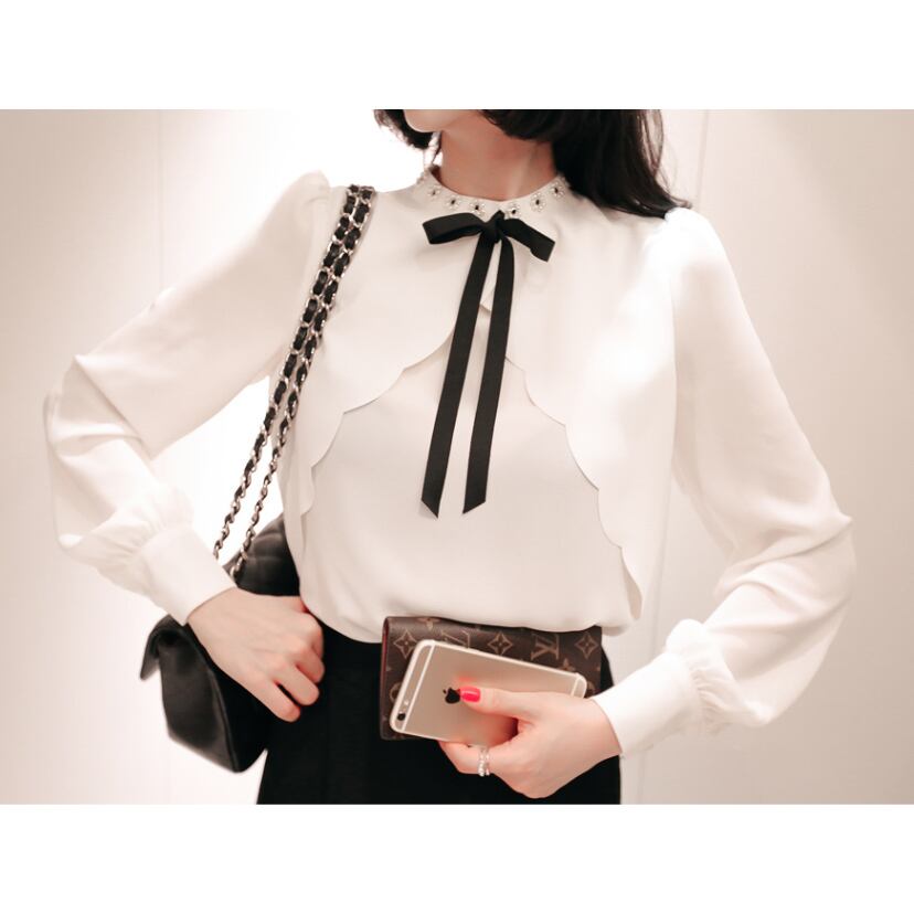 【2色】フェミニン★ケープ重ね着リボンブラウスdmr54