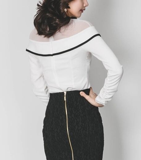 【2色】シースルーショルダーカラーポイントブラウスdkk19