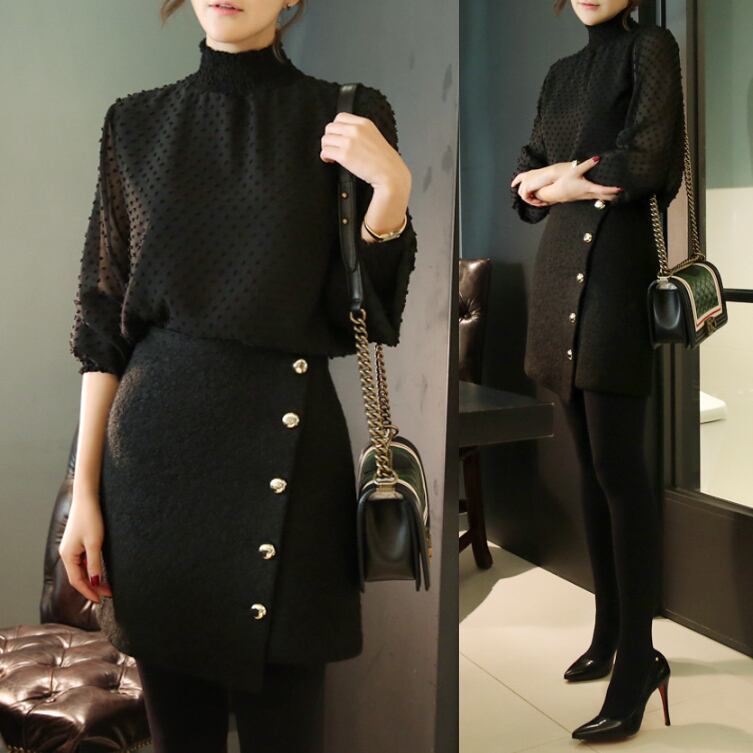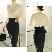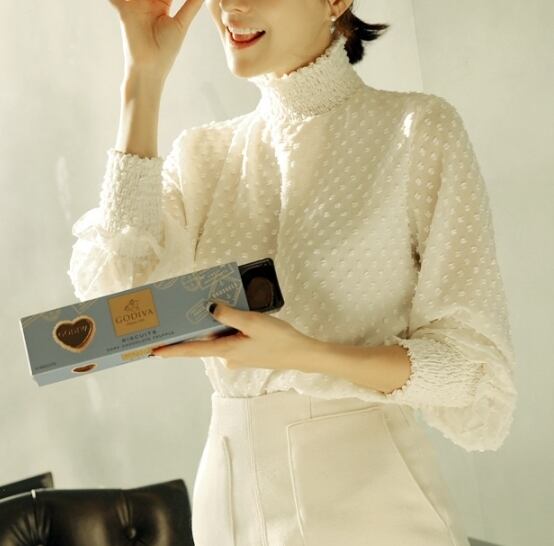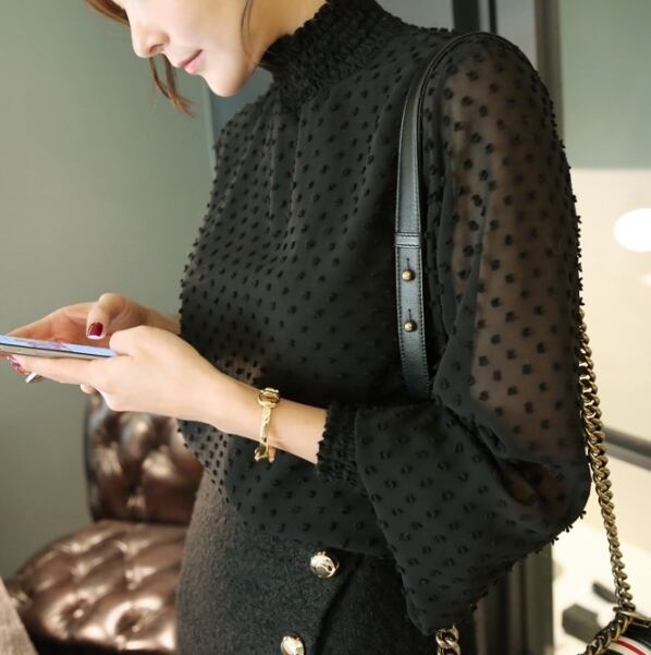 【2色】フェミニン★ドットシフォンスモッキングブラウスdlp102