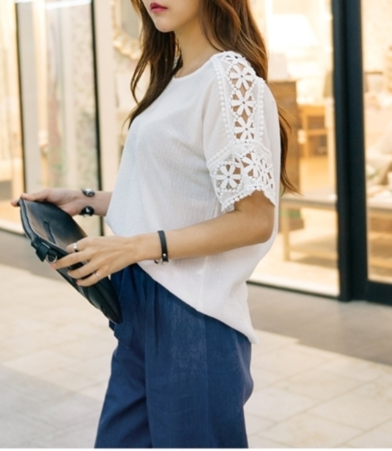 【3色】フェミニン★レースポイントルーズフィットブラウスdrd30