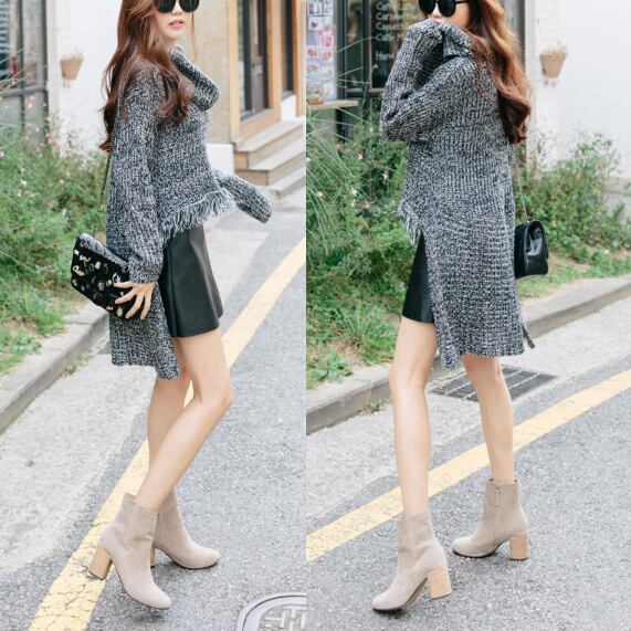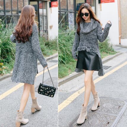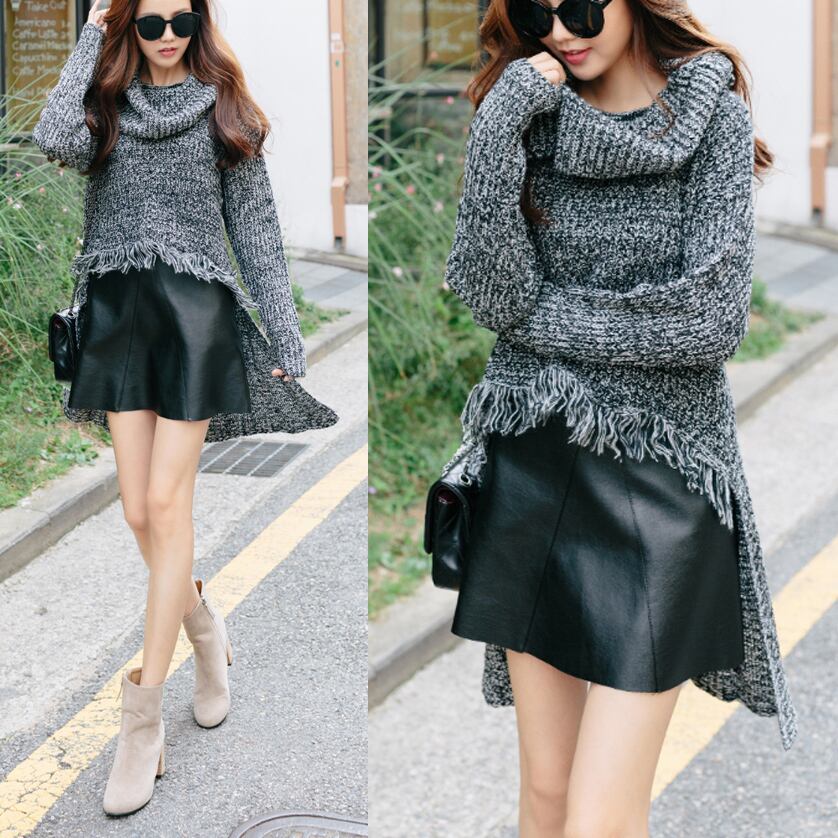 [2色]人気商品★ユニークアンバランスタートルネックニットdrd34
