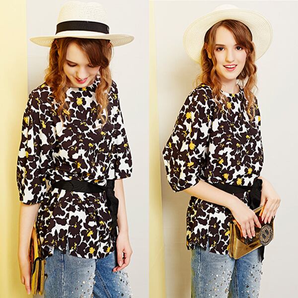花柄 総柄フレアチュニック オフィス オシャレ 大人可愛い OL