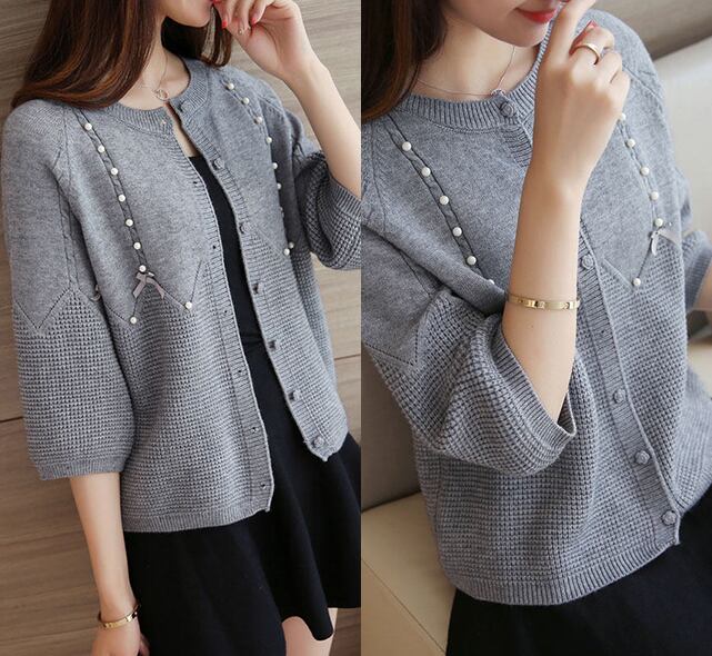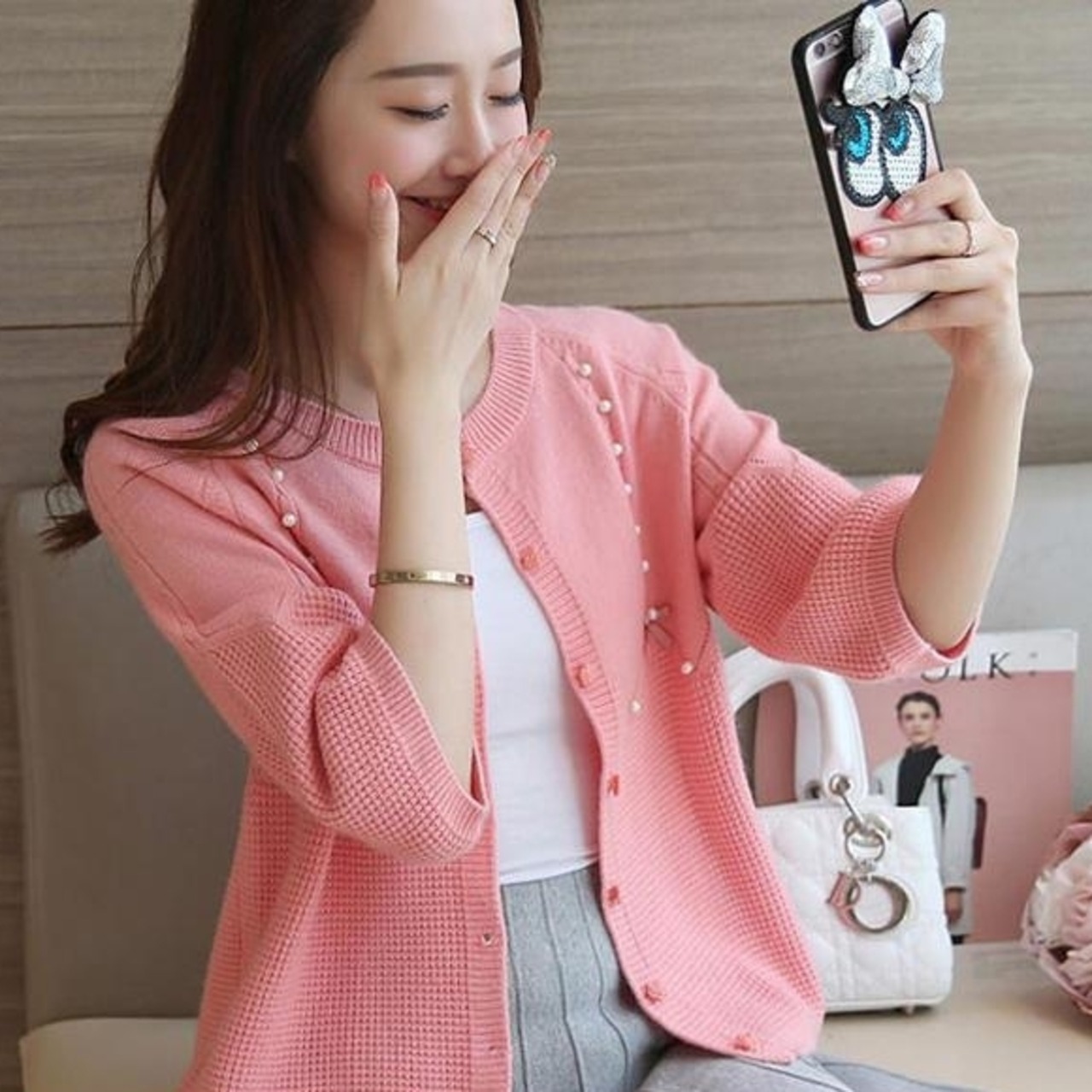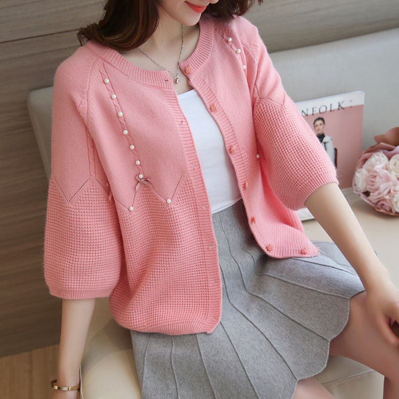 お上品な七分袖カーディガン 春秋 羽織り 上着 ジャケット OL