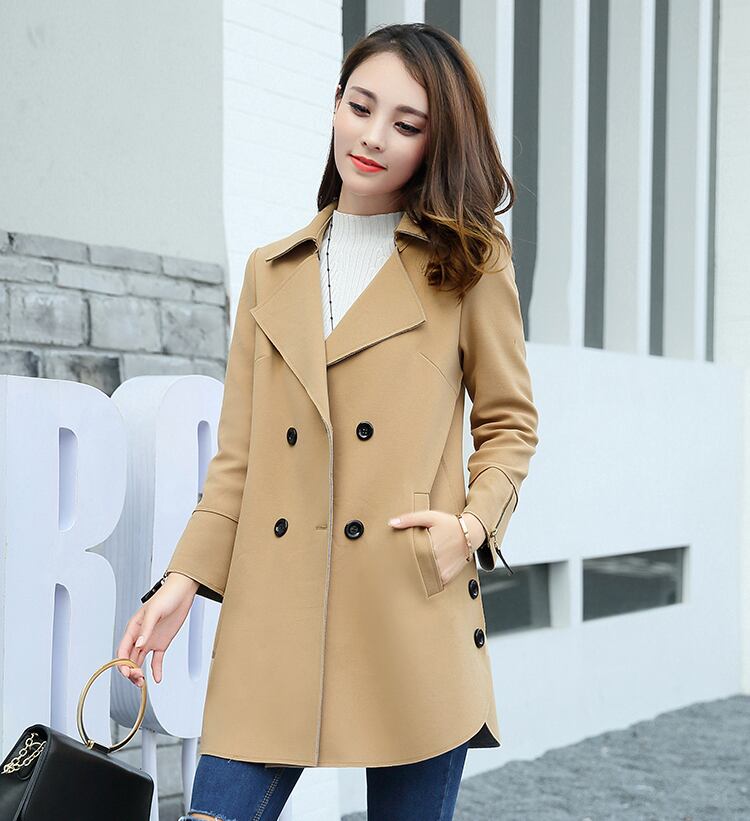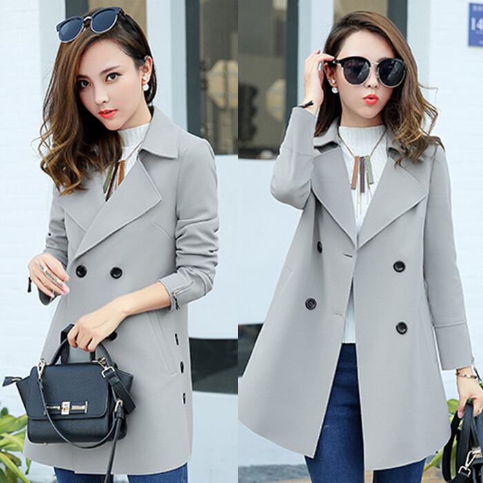 サイドラウンドボタンがポイント オシャレトレンチコート OL