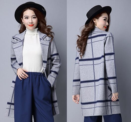 大きめチェック柄チェスターコート カーディガン ロング丈 B