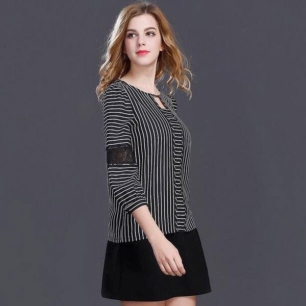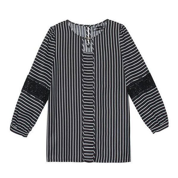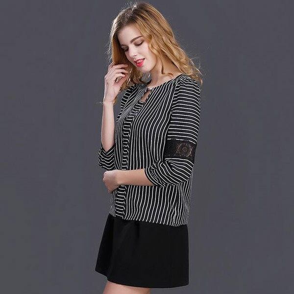 ★黒レーストリムスリーブ♪ストライプ&ボーダー柄トップス★