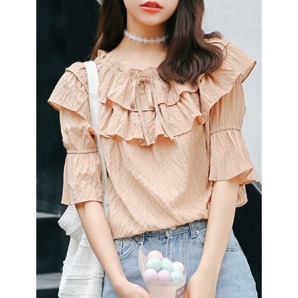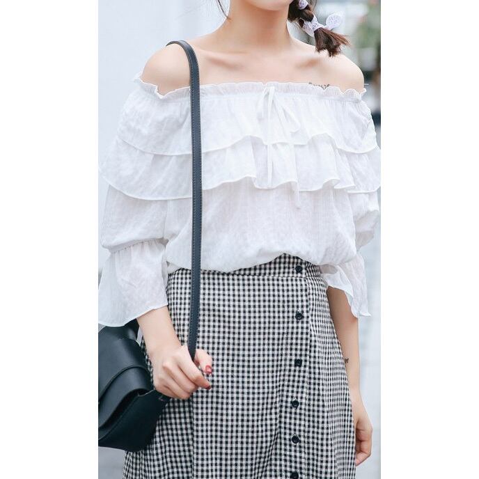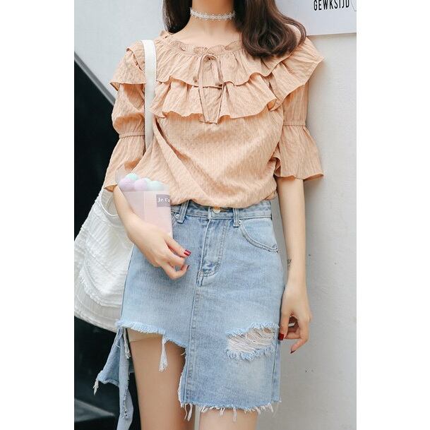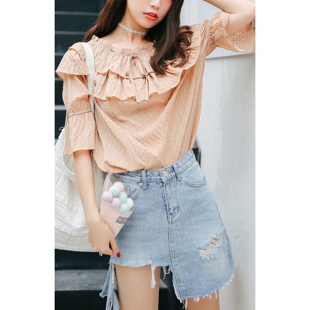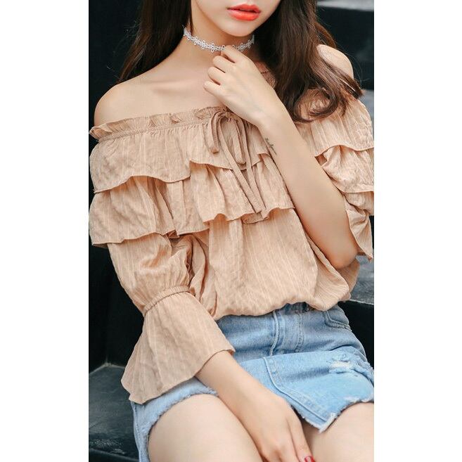 ★ダブルフリルショルダー♪2WAY仕様フレア袖ブラウス全3色★