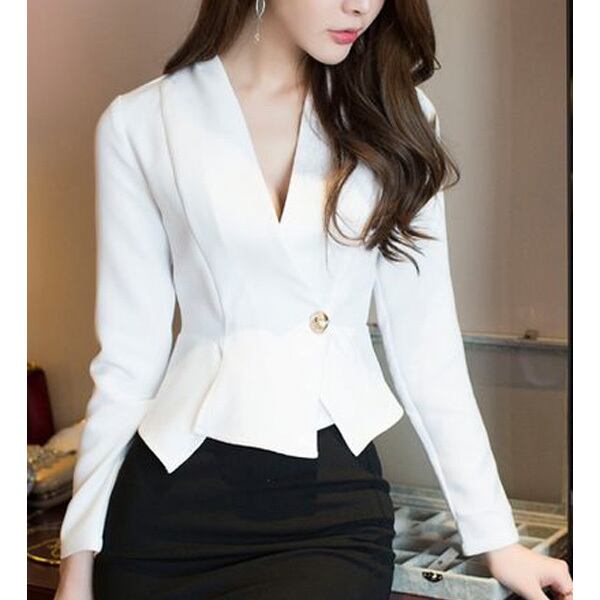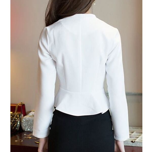 ★エレガントノーカラーVネック♪アクセントボタントップス★