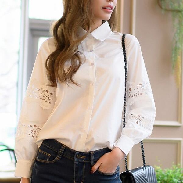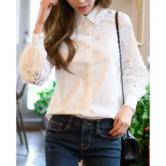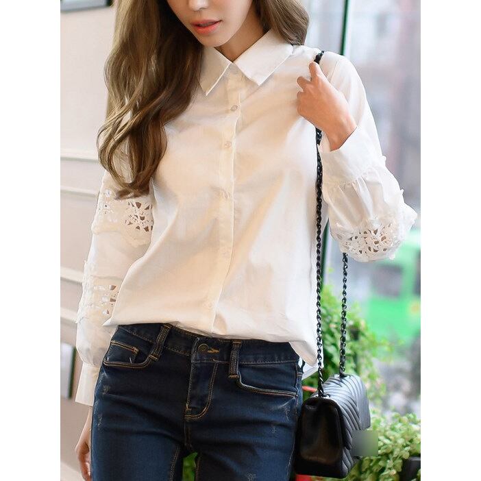 ★カットワークレースで可愛さアップ♪カジュアル白トップス★