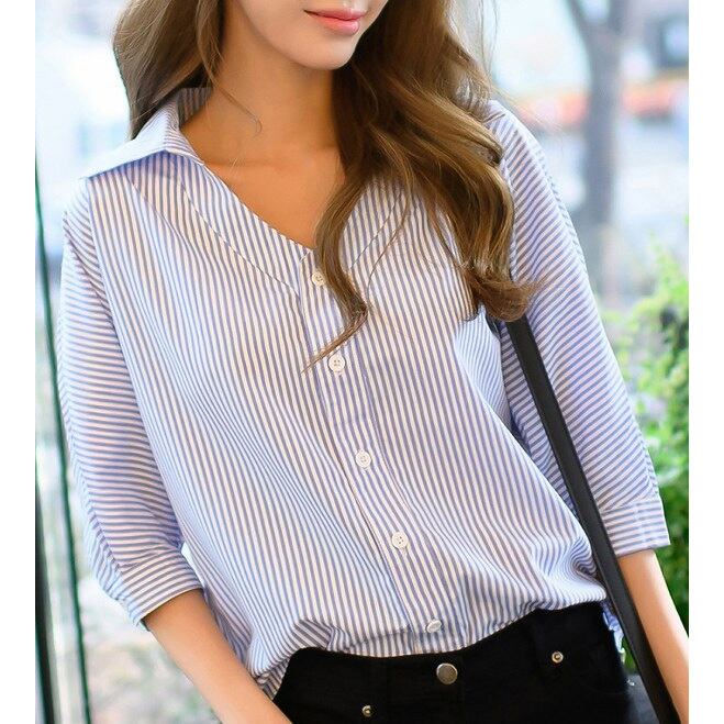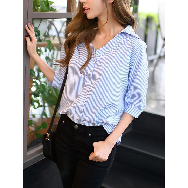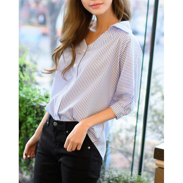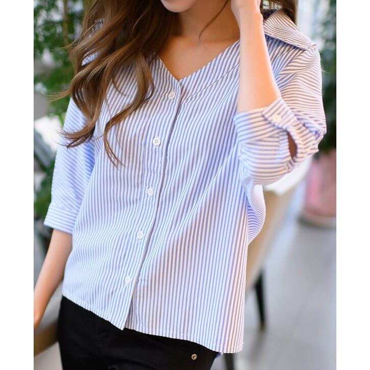 ★ゆるラインシルエット♪ストライプ柄スキッパーシャツ★
