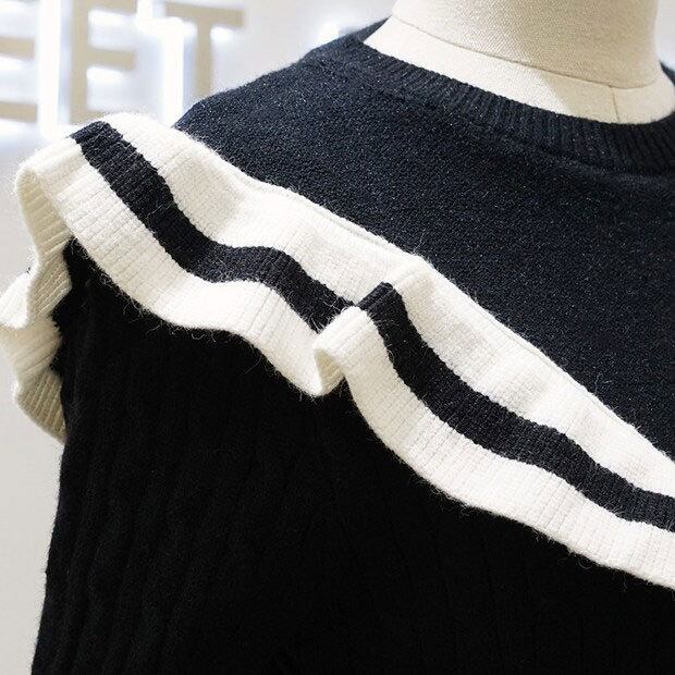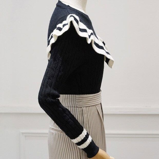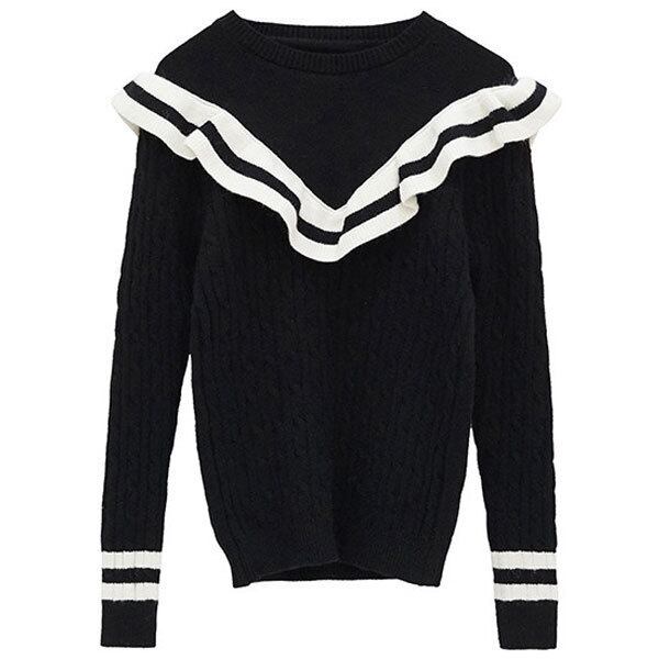 ★ライン入りフリルセーラーカラー風♪黒ニットセーター★