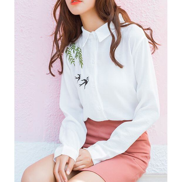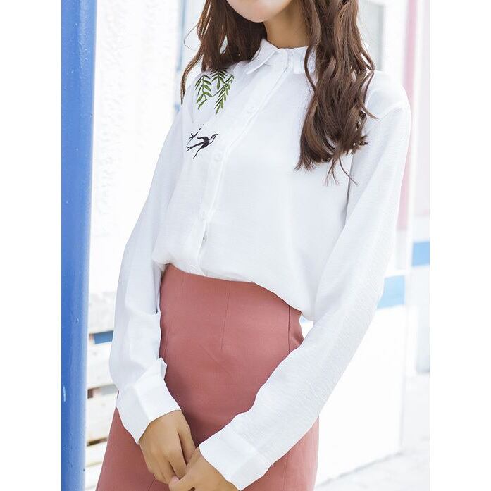 ★和テイストバード刺繍♪ロングスリーブカジュアルトップス★