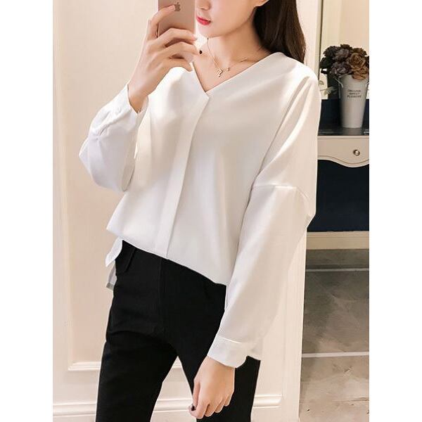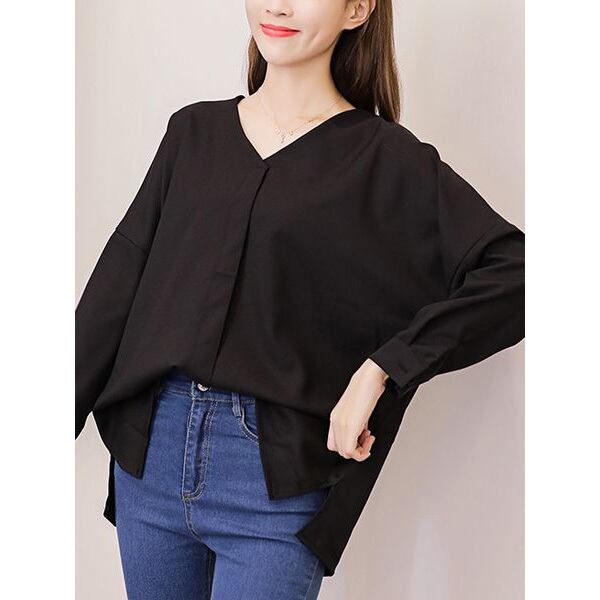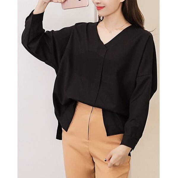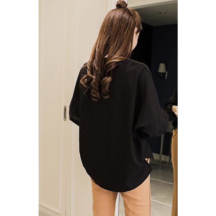 ★ゆったりドルマン袖♪前合わせ風ノーカラーブラウス全2色★