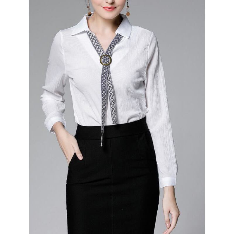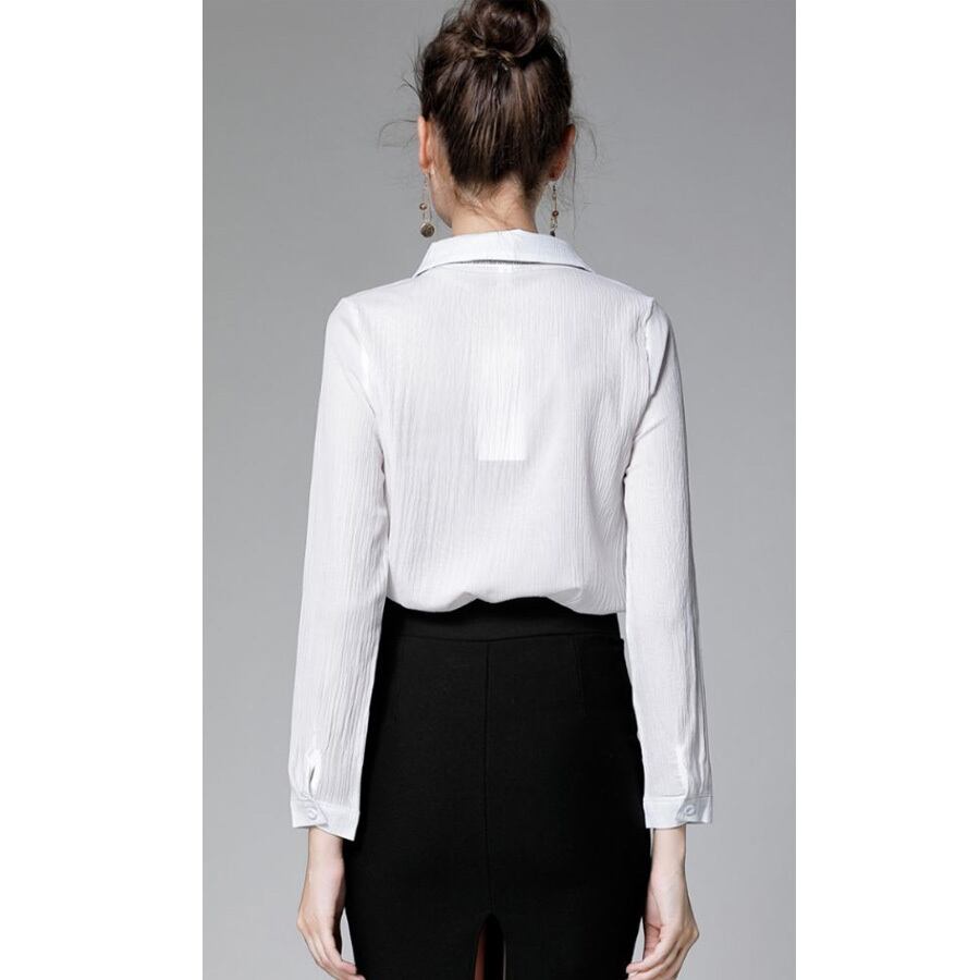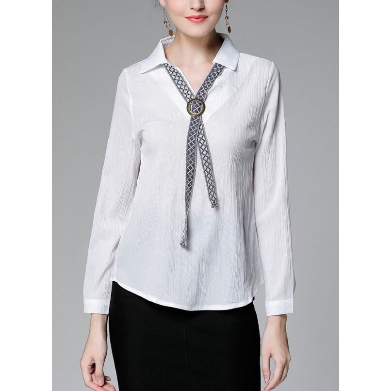 ★ネクタイ風アクセント♪ロング袖スキッパーブラウス全2色★