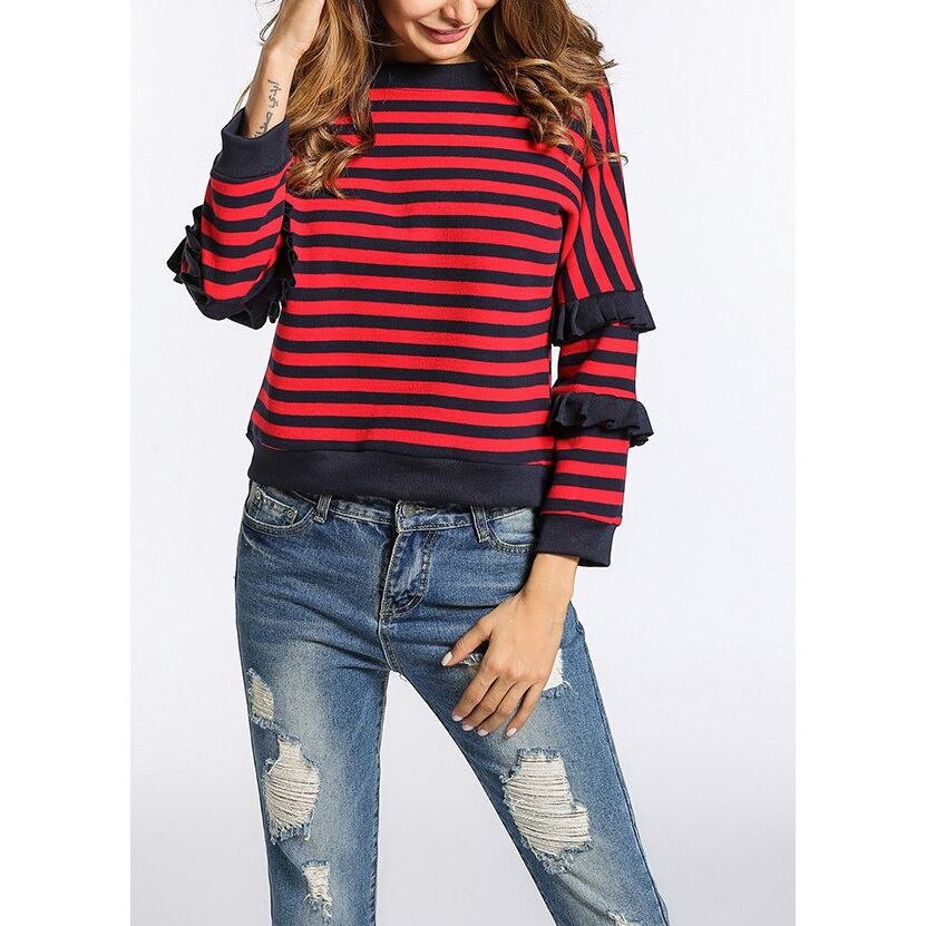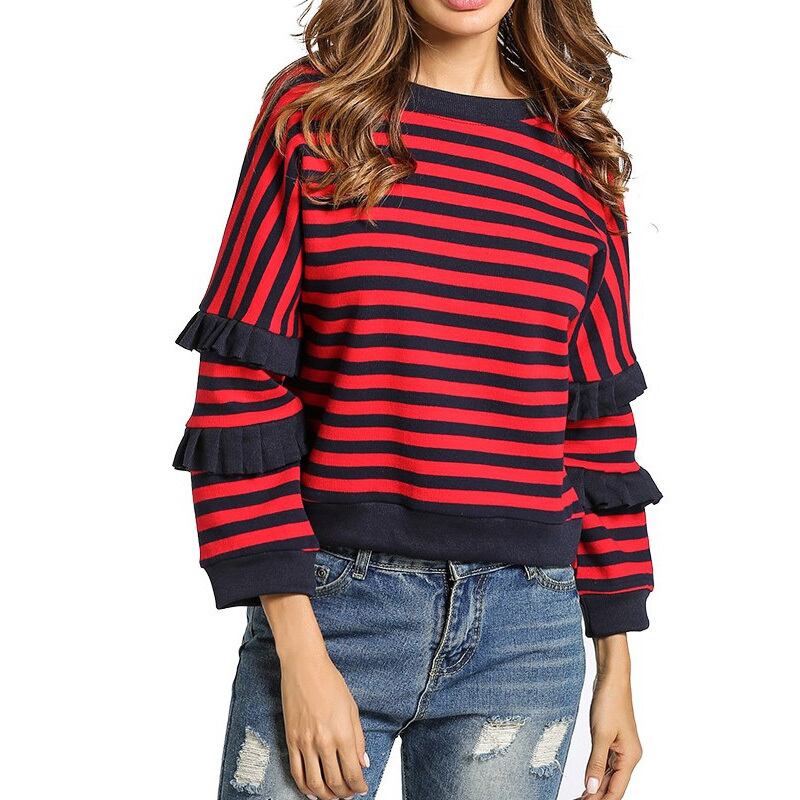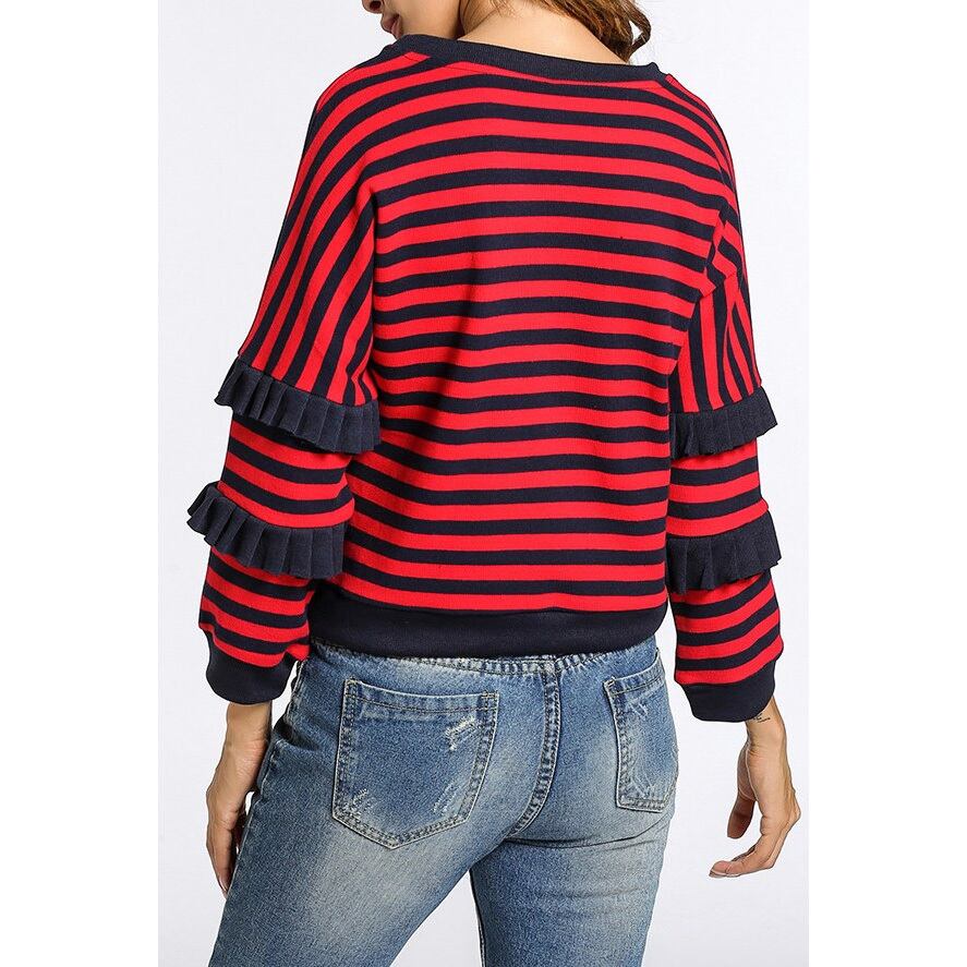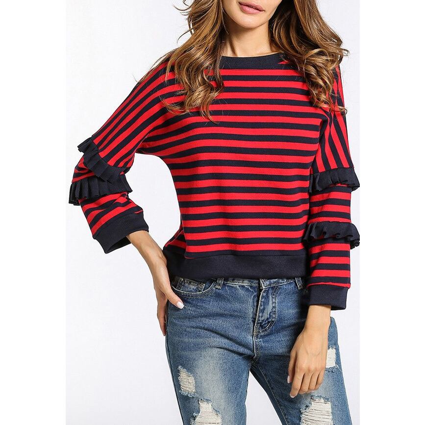 ★ガーリーWフリル袖♪コントラストボーダー柄トップス全2色★