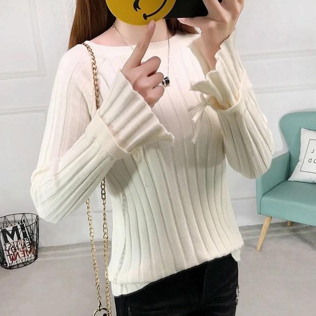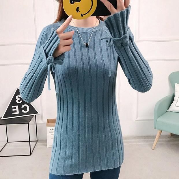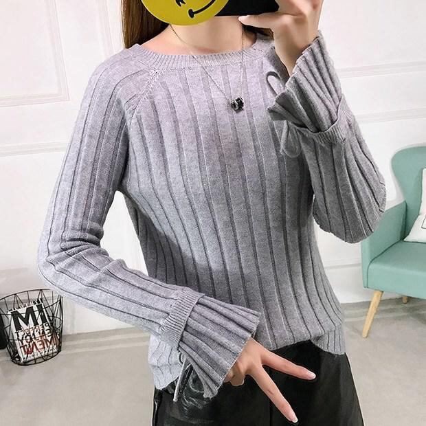★スリット&フレアー袖♪リブ編みニットセーター全4色★
